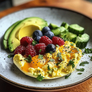 Delicious Scrambled Eggs with Avocado & Juicy Berries