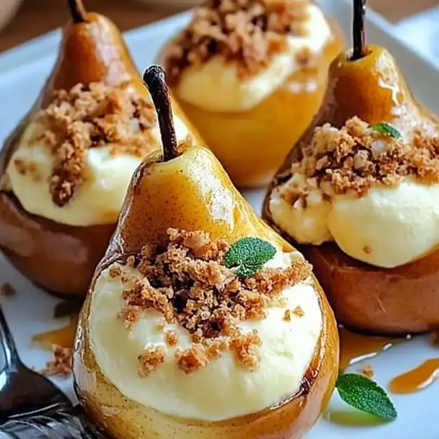 Pears – Fresh, firm pears provide the sweet, juicy background for the ricotta filling. Ricotta Cheese – A creamy, mild dairy base that soothes the palate and holds the flavor integrity. Honey – Adds a delicate sweetness that compliments both ricotta and the pear’s natural sugars. Toasted Pistachios – Their nutty crunch and bright color give the dish visual appeal and pleasant texture. Lemon Zest – Infuses a citrus aromatics that brighten the entire stuffing. Sea Salt – Enhances the natural sweetness of the pears and balances richness of the ricotta. Black Pepper – Adds a gentle piquancy that balances the subtle harmony. Fresh Thyme Leaves – Delivers a fragrant herbal layer that ties together the flavors. Olive Oil – Used to glaze the pears, imparting a glossy sheen and a subtle oiliness. Balsamic Reduction – A drizzle of this brings acidity and visual appeal; it’s optional but elegant.