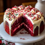 Experience the warmth of the holidays with a slice of Red Velvet Christmas Cake. This vibrant dessert features a rich cocoa flavor, velvety texture, and creamy cream cheese frosting. Perfect for festive gatherings or cozy nights by the fire, this cake is sure to delight everyone at your holiday table.