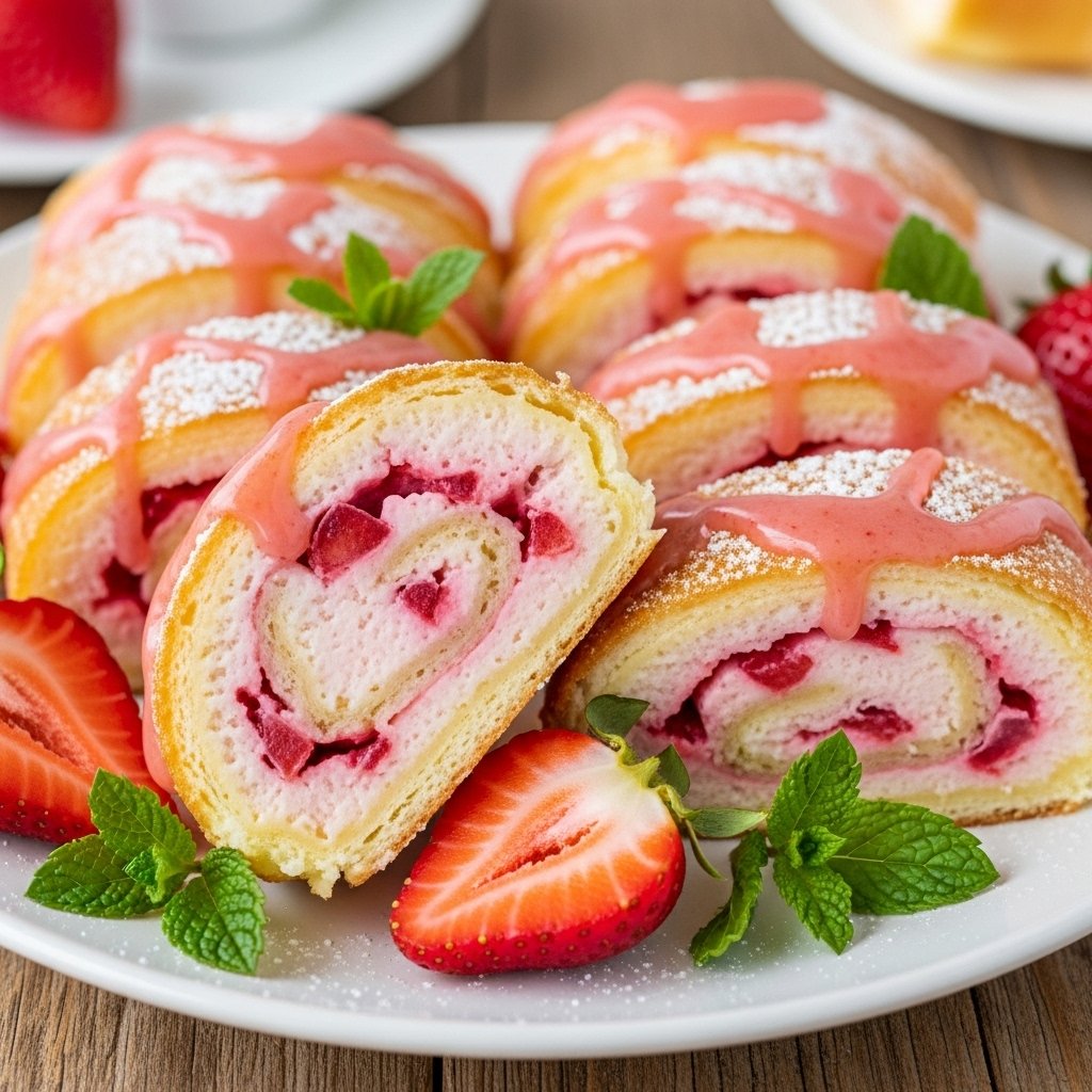 These Strawberry Shortcake Cheesecake Rolls Rich are perfect for any occasion and can be served in various ways. Here are some delicious serving suggestions:- With whipped cream: A dollop of freshly whipped cream on top enhances the dessert’s richness and adds an airy texture.