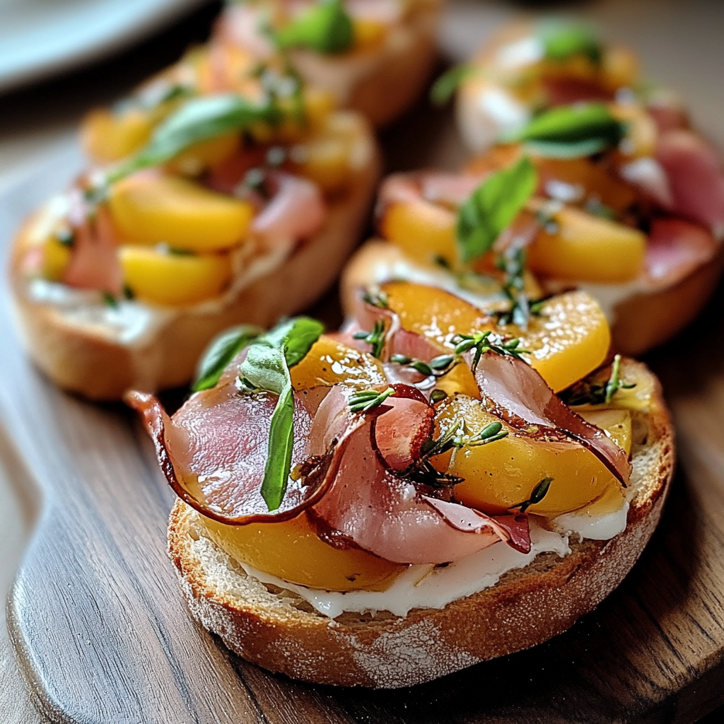 Cheesy Burrata Crostini with Prosciutto and Peaches