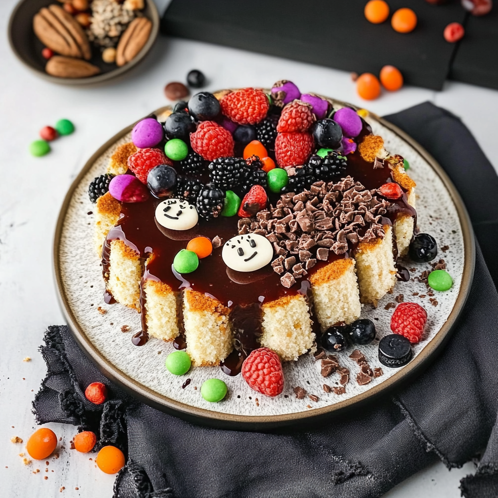 Elevate your Halloween celebration with this decadent Chocolate-Pumpkin Cake, a perfect blend of rich chocolate and warm pumpkin spice. This adult-oriented dessert not only looks stunning but also tantalizes the taste buds with every bite. Perfect for gatherings or cozy nights in, this cake is adorned with edible glitter for a touch of magic. Your guests will be spellbound by its flavor and presentation!