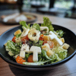 The Ghostly Ceaser Salad Recipe – Creepy Halloween Salad gets its spooky vibe from creative presentation ideas like using black olives as spider eyes and ghost-shaped croutons. These elements transform a classic Caesar salad into an exciting dish perfect for Halloween gatherings.