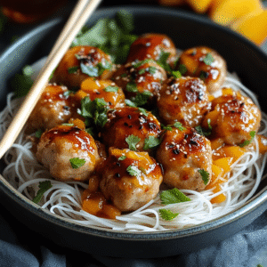 Irresistible Spicy Asian Chicken Meatballs with Noodles