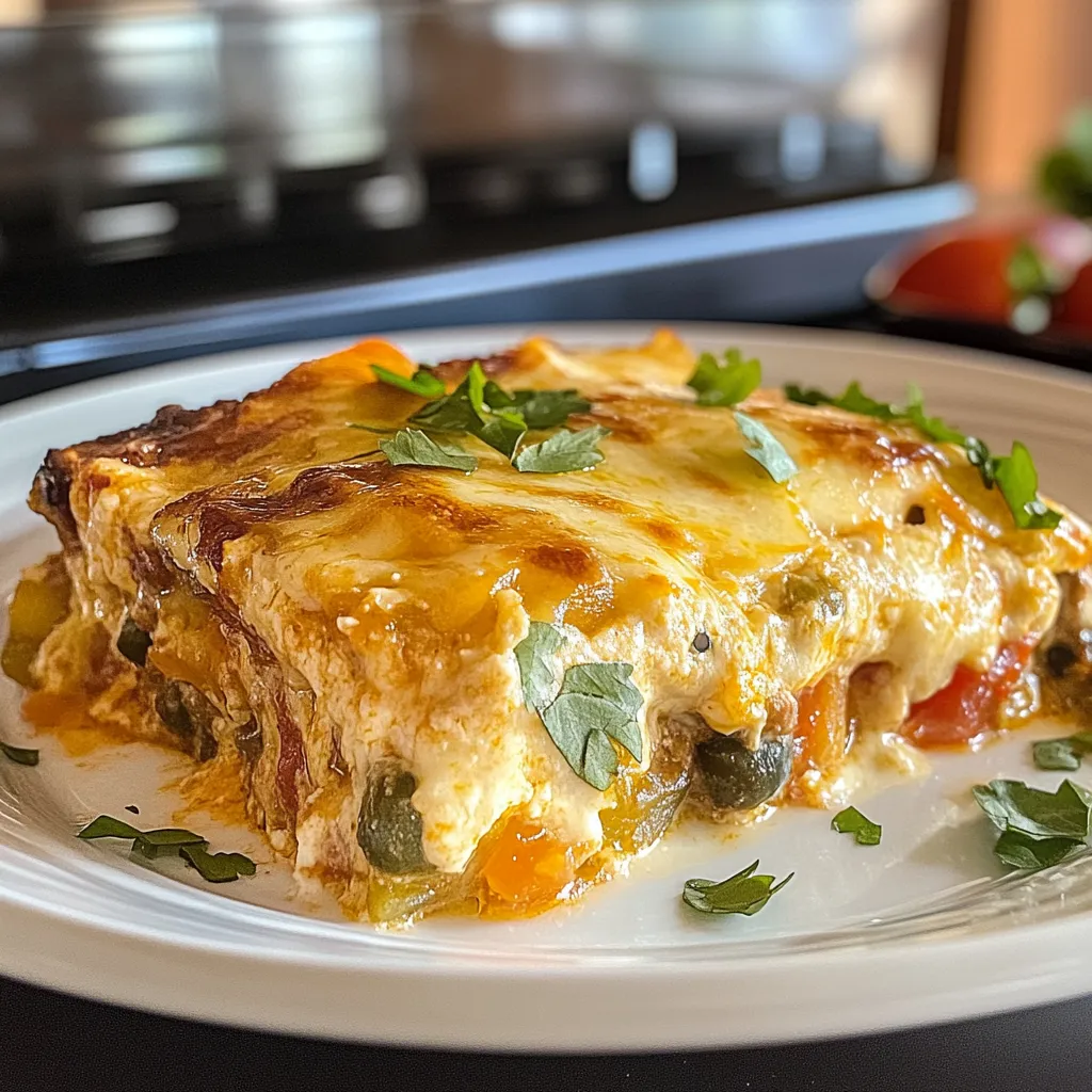 This casserole can be served straight from the baking dish for a rustic look or plated individually for an elegant touch. Consider serving alongside some fresh avocado slices or a zesty salsa for extra color and flavor contrast. A dollop of guacamole or sour cream can also add creaminess that pairs wonderfully with each bite. For an additional twist, sprinkle some lime juice over each serving just before eating; it enhances all the flavors beautifully!